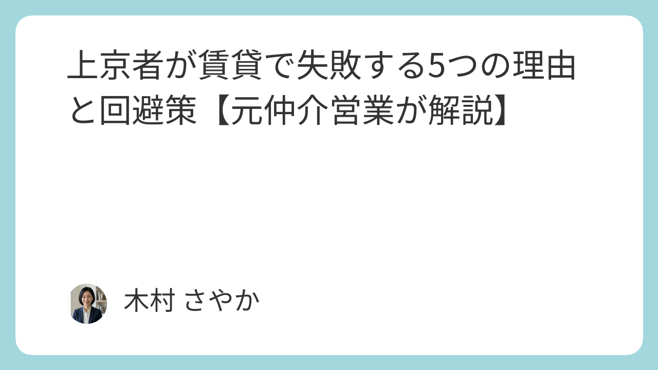 上京者が賃貸で失敗する5つの理由と回避策【元仲介営業が解説】